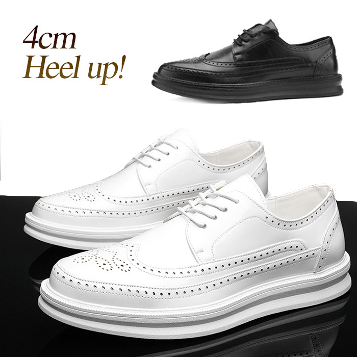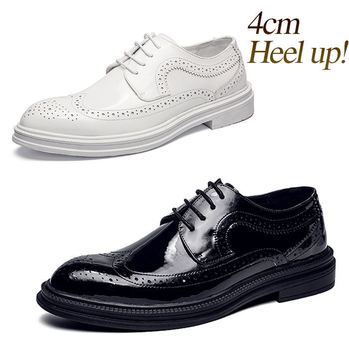 カジュアルシューズ メンズ ウィングチップ メダリオン エナメル ヨーロピアン おしゃれ 大人 ブラック ホワイト 4cm身長アップ