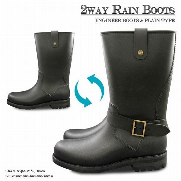 ペコスブーツ ブーツ メンズシューズ 紳士靴 メンズファッション 靴 G B ベルト脱着 2way仕様 エンジニアブーツ ブラック ベルト 脱着 男 雨の日 足元 お洒落 メンズレインブーツ 2WAYタイプ 切り替え ラバーブーツ 防水性高い 汚れに強い ヨーロピアンタイプ スタイリッシュ