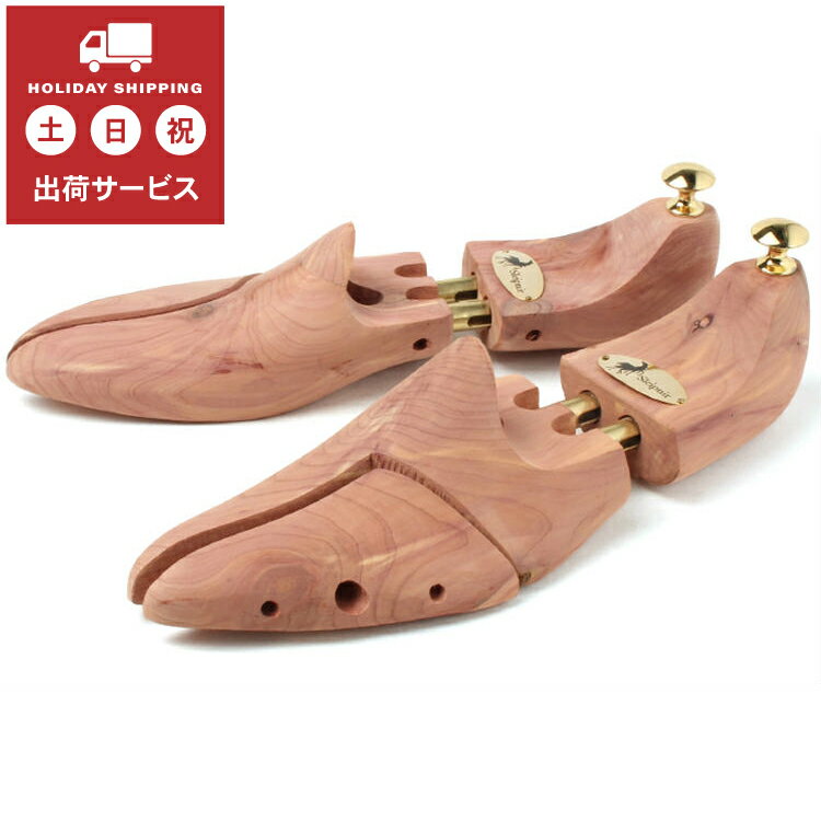 商品の特徴 ●シューケアビギナーから、エキスパートまで。あらゆる方々の「こだわり」を満足させる逸品です。 ●フランス・イタリア製の靴に多く見られるような甲からつま先にかけての高さを抑え、ロングノーズにも対応したグラマラスなシェイプが特徴です。 ●防臭・防虫・芳香・吸湿効果の高い、高品質な米国産アロマティックシダー(芳香杉)を使用。無塗装仕上げで、その効果を最大限に発揮します。 ●履きシワを伸ばし、ソールの反り上がりを復元します。 ●一日履いた靴は、シュートゥリー(シューズキーパー)を装着して、数日休ませてください。 ●つま先部分がサイドスプリット(可変)式のため、靴のつま先とフィットしやすい。 ●つま先側と踵側を金具2本で支えることで、前後にブレることなくテンションが掛かります。 ●大切な靴をより良い状態で保ち続けるために、必須のシューケアアイテムです。 ※甲部分にゴムベルトのある靴での使用は、取り外し時に引っかかる場合がある為お勧めしません。 ※気温の影響で、表面にシダーオイルが白く結晶化したり、オイル状に付着している場合がありますが、品質には問題ありません。 ティッシュやクロスで拭き取ると、綺麗になります。 シダーオイルは一般的な植物性油分で、皮膚や皮革に付着しても害はございません。安心してご使用いただけます。商品の特徴 ●シューケアビギナーから、エキスパートまで。あらゆる方々の「こだわり」を満足させる逸品です。 ●フランス・イタリア製の靴に多く見られるような甲からつま先にかけての高さを抑え、ロングノーズにも対応したグラマラスなシェイプが特徴です。 ●防臭・防虫・芳香・吸湿効果の高い、高品質な米国産アロマティックシダー(芳香杉)を使用。無塗装仕上げで、その効果を最大限に発揮します。 ●履きシワを伸ばし、ソールの反り上がりを復元します。 ●一日履いた靴は、シュートゥリー(シューズキーパー)を装着して、数日休ませてください。 ●つま先部分がサイドスプリット(可変)式のため、靴のつま先とフィットしやすい。 ●つま先側と踵側を金具2本で支えることで、前後にブレることなくテンションが掛かります。 ●大切な靴をより良い状態で保ち続けるために、必須のシューケアアイテムです。 ※甲部分にゴムベルトのある靴での使用は、取り外し時に引っかかる場合がある為お勧めしません。 ※気温の影響で、表面にシダーオイルが白く結晶化したり、オイル状に付着している場合がありますが、品質には問題ありません。 ティッシュやクロスで拭き取ると、綺麗になります。 シダーオイルは一般的な植物性油分で、皮膚や皮革に付着しても害はございません。安心してご使用いただけます。