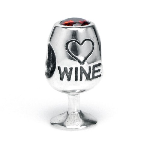 【中古】【未使用・未開封品】Queenberry(クィーンベリー) スターリングシルバー.925製 赤ワイン愛好家 グラスカップ型 ハート ラブ クリスタルビーズ、ヨーロピアンチャーム