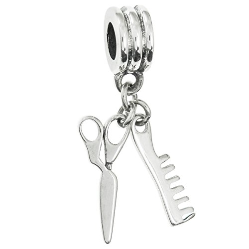 【中古】【未使用・未開封品】Sterling Silver Hair Stylist Scissors Comb European Style Dangle Bead Charm
