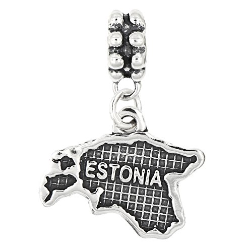 【中古】【未使用・未開封品】スターリングシルバー製 いぶし仕上げ テクスチャード加工 エストニア地図 ヨーロピアン ダングル ビーズチャーム