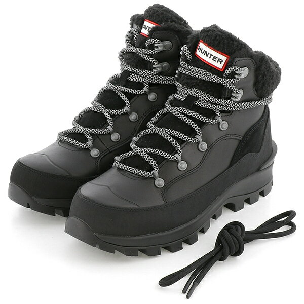 【エントリーでポイント10倍】HUNTER W EXPLORER LEATHER SHOE ローカット スニーカー シューズ レディース ブラック 22 23 24 25 ハンター エクスプローラー インシュレイティド レザー シューズ WFF2237LEA アウトドアシューズ 婦人 替え紐 防水 防雪 黒 BLACK