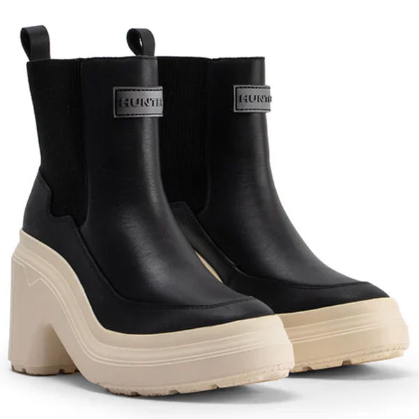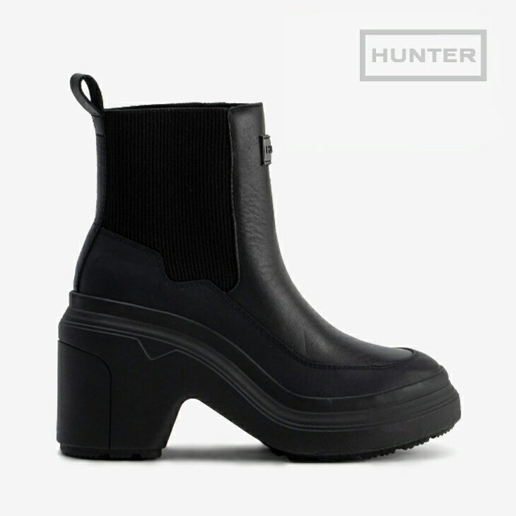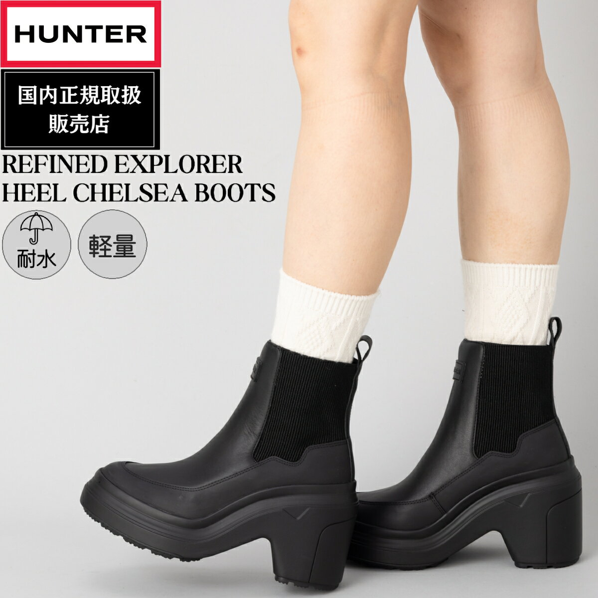 【正規取扱販売店】ハンター HUNTER REFINED EXPLORER HEEL CHELSEA BOOTS リファインド エクスプローラー ヒール チェルシー ブーツ 耐水 レディース ブラック シューズ ショートブーツ 太ヒール ヒールブーツ レザーブーツ 雨 晴れ WFP8001LEA