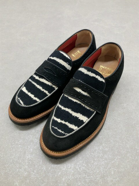 【送料無料】R.J.B(アールジェイビー) 1663 フラットヘッド ゼブラ柄 スウェード コイン ローファー サイズ9 27cm ブラック 【中古】【007】