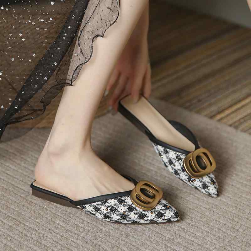 ミュール レディース 春夏 外履き 普段使い フレンチスタイル ポインテッドトゥ フラット クローズドトゥ おしゃれ 軽量 ブラック
