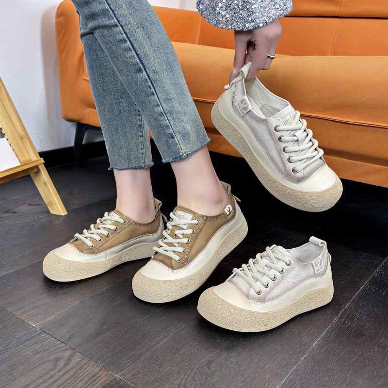・スタイル: 復古・トレンド要素: カラーミックス・つま先形状: ラウンドトゥ・アッパー素材: 牛革・対象性別: 女性・ヒール高: フラット・パターン: ソリッド・カラー: ベージュ,キャメル・サイズ: 35,36,37,38,39,40・アウトソール素材: ラバー・ライニング素材: 牛革・シューズ高: ミッド・ヒール形状: フラット・ソール製法: セメント・着用方法: フロントレース・機能: 通気性,耐摩耗・インソール素材: 豚革・対象シーン: 日常・開口深さ: ミッド・商品カテゴリ: スニーカー・対象年齢: 成人・素材工法: 接着・款式: スポーツカジュアル・ヒールスタイル: フラット・クロージャー: レースアップ