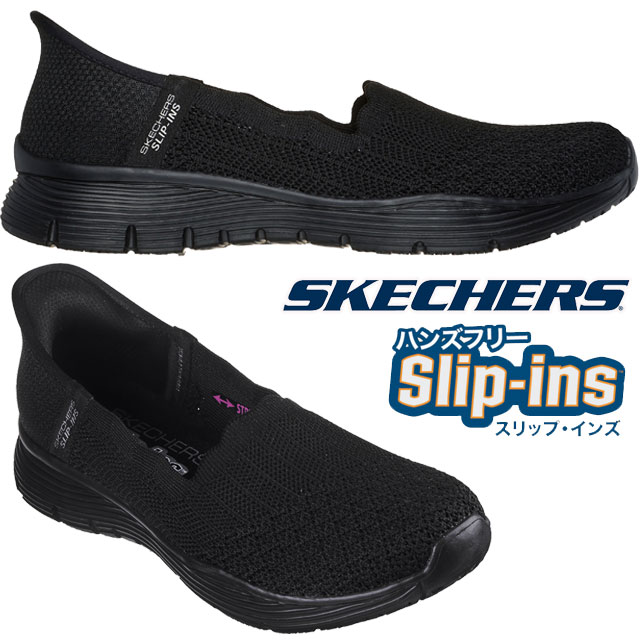 立ったまま 履ける 靴 ハンズフリー スケッチャーズ SKECHERS スリップインズ シーガー ビリーブ イット 158980 レディース ブラック トープ 靴 シューズ スニーカー スリッポン