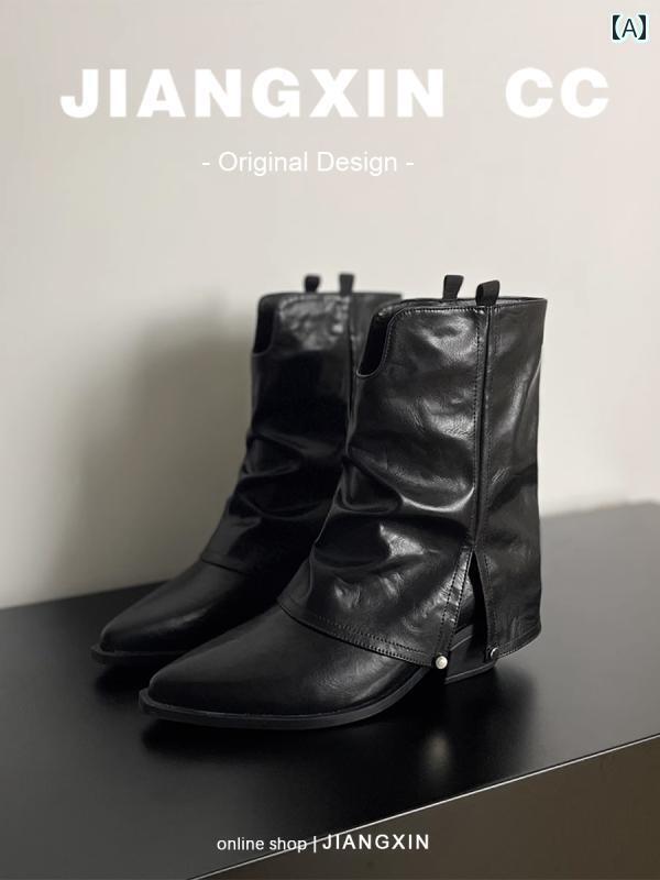 ブーツ レディース おしゃれ シープスキン レトロ アメリカン ブーツ 尖った 黒の スリム スリッポン ショート レディース 夏用