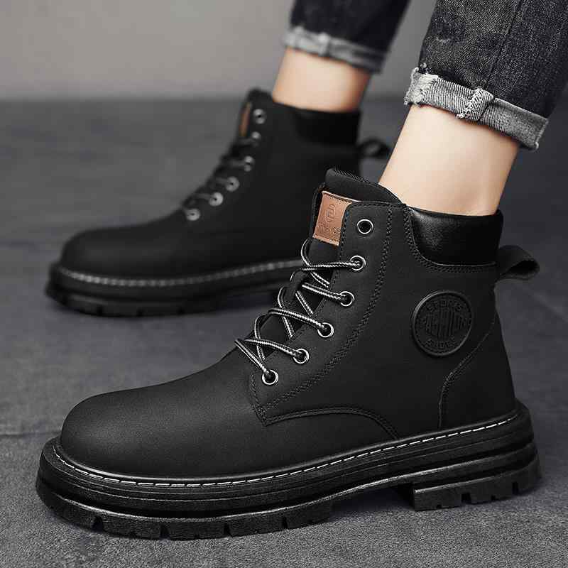 ブーツ 男性用 ショートブーツ ワークブーツ レザー 厚底 防水 ブラック 黒 黄 普段使い カジュアル 秋冬