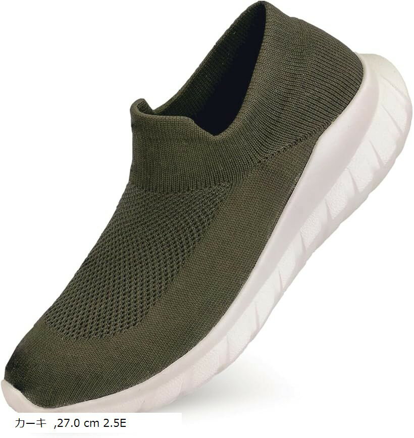 スリッポン スニーカー シューズ メンズ レディース ジム用 ウォーキング ランニング スポーツ 軽量 通気性 クッション性 (カーキ, 27.0 cm 2.5E)