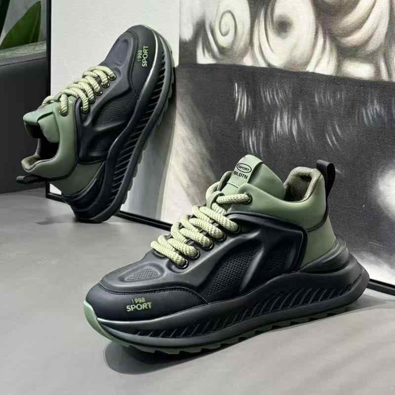 スニーカー メンズ 男性用 運動靴 スポーツ カジュアル ローカット 厚底 合成皮革 黒 緑 黄色 ブラウン 通気性 軽量 春夏 秋(x2)