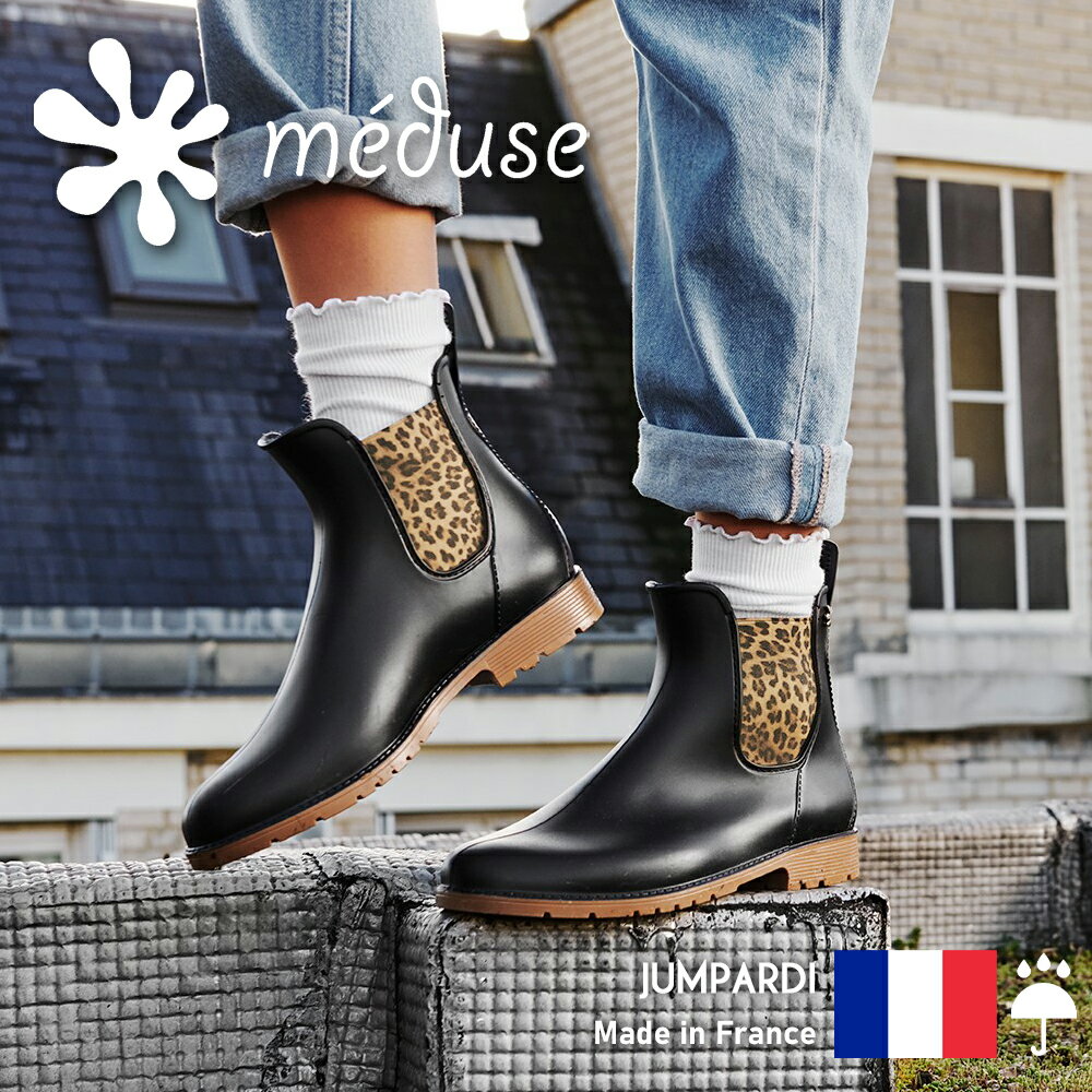MEDUSE メデュース 【JUMPARDI】サイドゴアレインブーツ メディウス サイドゴア ショートブーツ レインブーツ レオパード ブラック 完全防水 長靴 雨 レインシューズ 梅雨