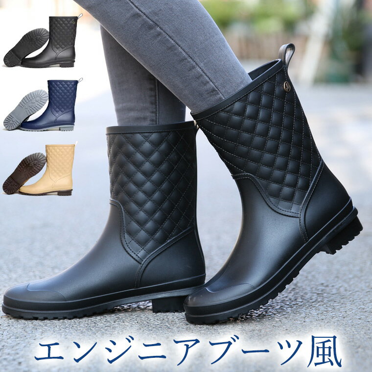 エンジニアブーツ風レインブーツ ミディアム丈 ロングブーツ ロングレインブーツ レディース レインブーツ ブラック ネイビー レインシューズ 雨靴 おしゃれ ロングブーツ 雨対策 雪対策 長靴 雨靴 ガーデニング 農作業