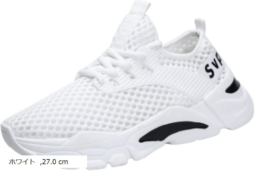 スニーカー メンズ ランニングシューズ ウォーキング ジョギング トレーニングシューズ 通気性 軽量 蒸れにくい 滑り止め (ホワイト, 27.0 cm)