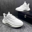 ダッドスニーカー メンズ 厚底 シークレットヒール 白スニーカー 通気性 スポーツカジュアルシューズ レースアップ 合成皮革 ラバーソール デイリーユース メッシュ裏地 ラウンドトゥ ローカット