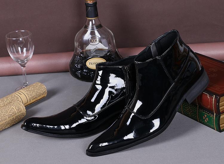 ショートブーツ メンズ ブーツ 黒光り加工 英国風 カジュアル 美容師 ホスト 尖ったつま先 牛革 ジッパー チャック ヒール 無地 レザー 丈 滑り止め