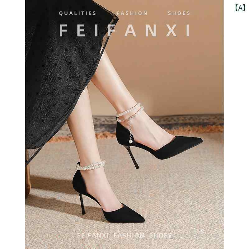 韓国 靴 シューズ 春夏 秋 冬 レディース かわいい おしゃれ 黒 ハイヒール 靴 春 スティレット スタイル ロイヤル スタイル マッチング ドレス メタル ポインテッドトゥ セクシー トゥ キャップ サンダル