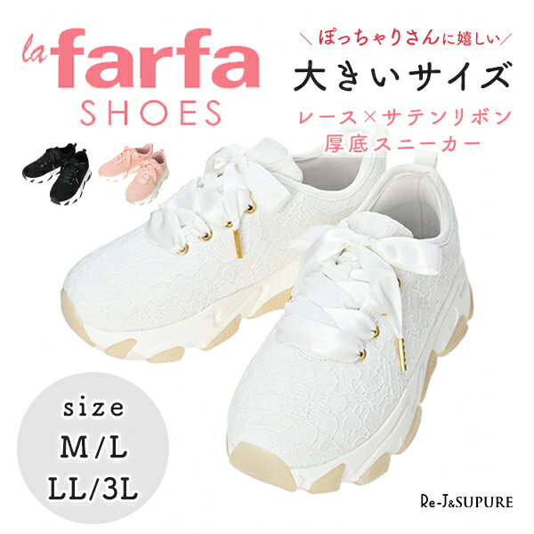 幅広 ゆったり パンプス ラファーファ 大きいサイズ 【Re-J&SUPURE】【la farfa SHOES/ラ・ファーファシューズ】厚底レーススニーカーLL 3L 4L レディース 靴 歩きやすい 楽 シューズ レディース Re-J&SUPURE リジェイ レース スニーカー ピンク 青 黒 白 フェミニン