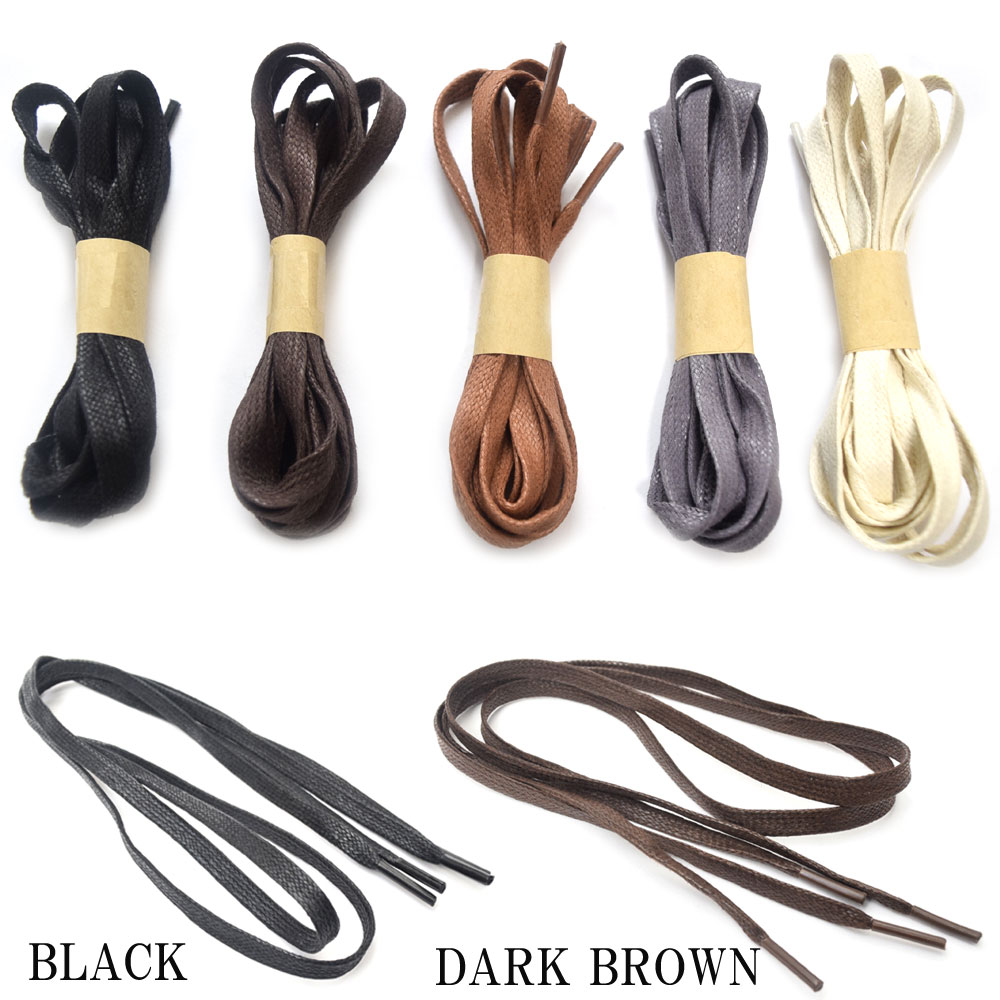 LA-024-145【靴ひも シューレース】【145cm】【平紐】ロウ引き平ヒモシューレース 2本入り(1足分)8ホール 7ホール/革靴/ ワックスシューレース 平紐/ワーク紐/くつひも チャッカブーツ レッドウィング トリッカーズ 交換用 替え紐 カントリー ワックスコード