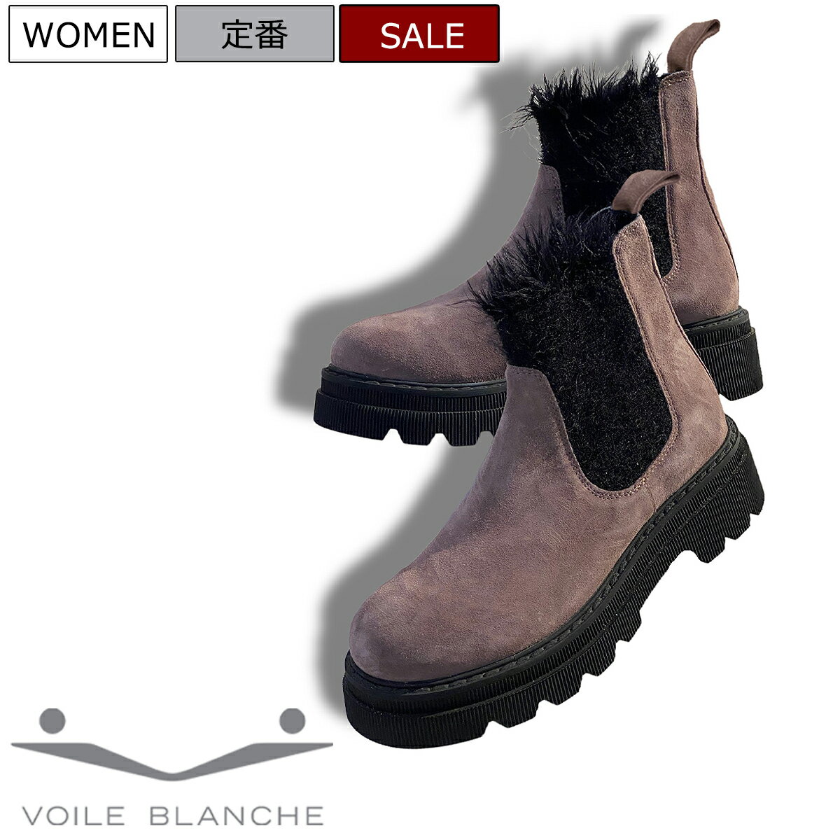 【定価52,800円(税込)】VOILE BLANCHE ボイルブランシェ ブランドらしさ溢れるチャンキーなラグソールが存在感漂うエコファー付きサイドゴアスウェードレザーブーツ チェルシーブーツ アトランティックスターズを凌ぐ人気ブランド!靴 シューズ ココア DELMA レディース la1