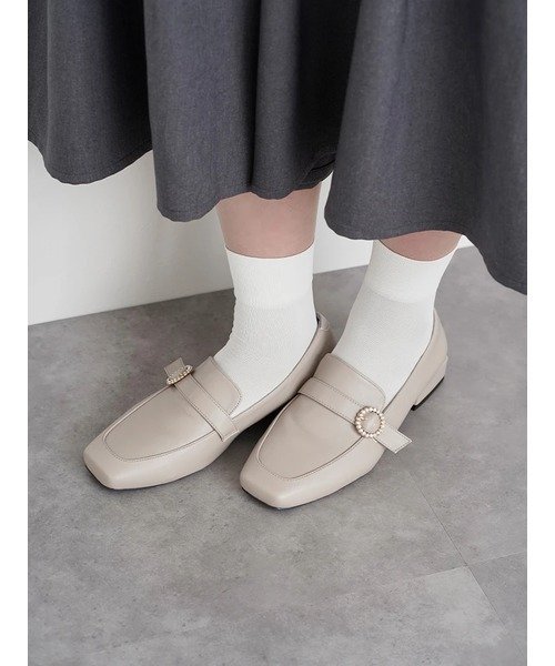 Re-J&SUPURE 【la farfa SHOES/ラ・ファーファシューズ】ビジュー付きスクエアローファー リジェイアンドスプル シューズ・靴 パンプス ホワイト【送料無料】