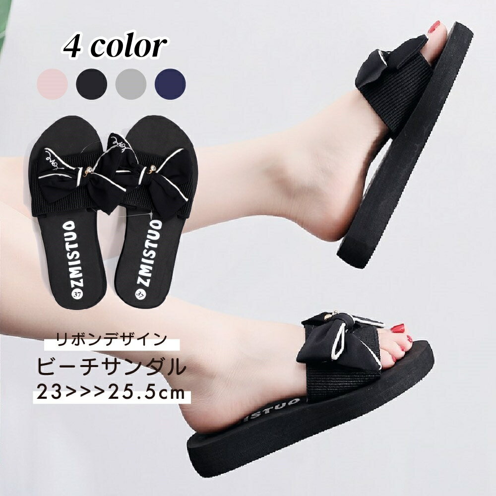 送料無料 ビーチサンダル レディース 女性 靴 クツ シューズ リボン ラインストーン フラット 厚底 ロゴ 英字 LOVE ブラック ピンク シンプル カジュアル かわいい キュート おしゃれ 夏