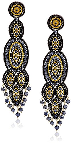 【中古】【未使用・未開封品】ドロップピアス Miguel Ases ブラッククォーツ スレンダーオーバル型