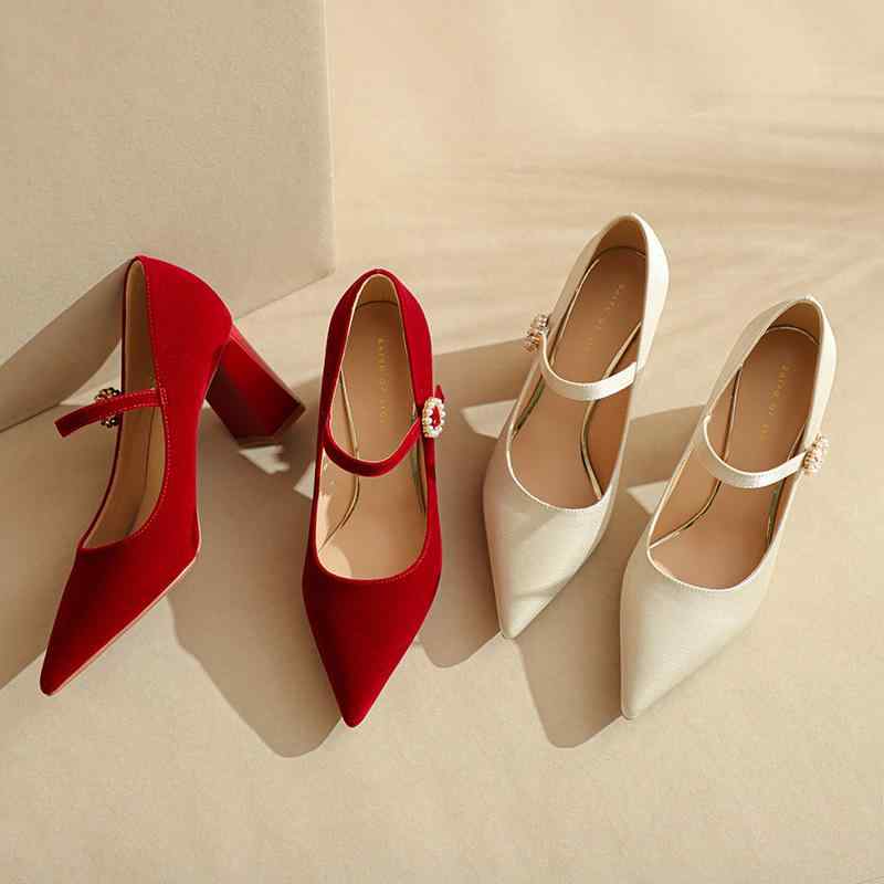 2個セットパンプス レディース ポインテッドトゥ 太ヒール ハイヒール ウェディングシューズ パーティーシューズ 春夏 秋 米白 赤 歩きやすい 美脚 普段使い かわいい