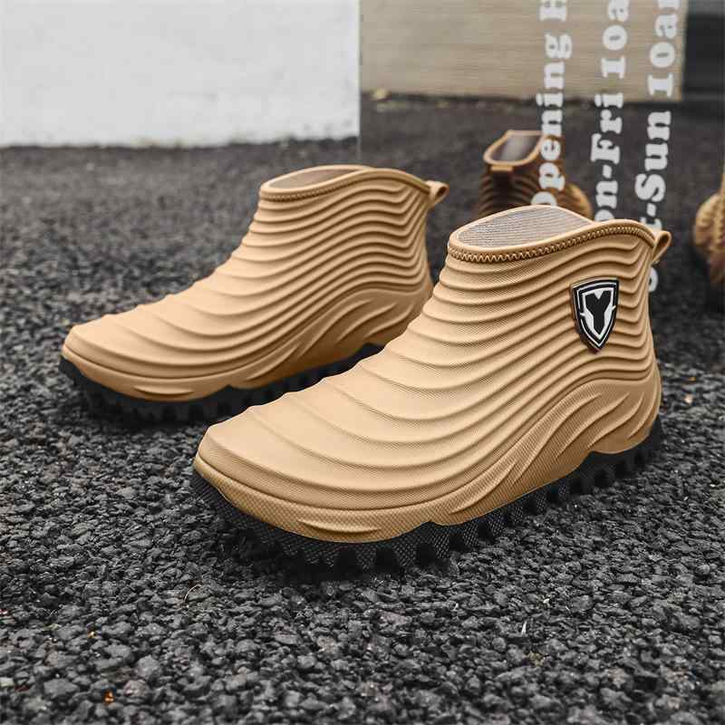 レインブーツ メンズ 男性用 防水 防滑 厚底 ショートブーツ 暖か 裏起毛 釣り用 長靴 ワークブーツ 黒 白 カーキ