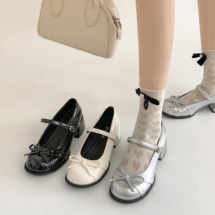 パンプス レディース バレエシューズ ローヒール チャンキーヒール ストラップ 無地 PUレザー 春夏 黒 ブラック ベージュ アイボリー