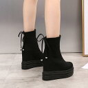 ブーツ レディース 厚底 インヒール ショートブーツ スエード調 ストレッチ 秋冬 ミドル丈 黒 ブラック 11cm 12cm