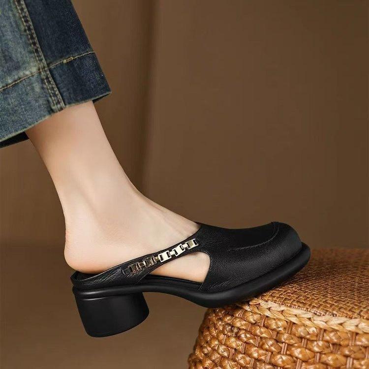 ミュール レディース 夏 外履き 柔らか クローズトゥ バックレス 太ヒール 厚底 プラットフォーム ハイヒール ラウンドトゥ おしゃれ カジュアル 普段使い サンダル シューズ ブラック 合皮 フェイクレザー