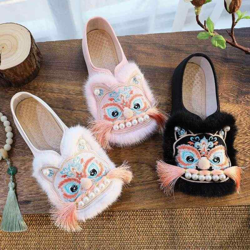 布靴 レディース スリッポン ぺたんこ 刺繡 花柄 民族風 ローヒール ラウンドトゥ 通気性 虎モチーフ 春夏 秋(x2)