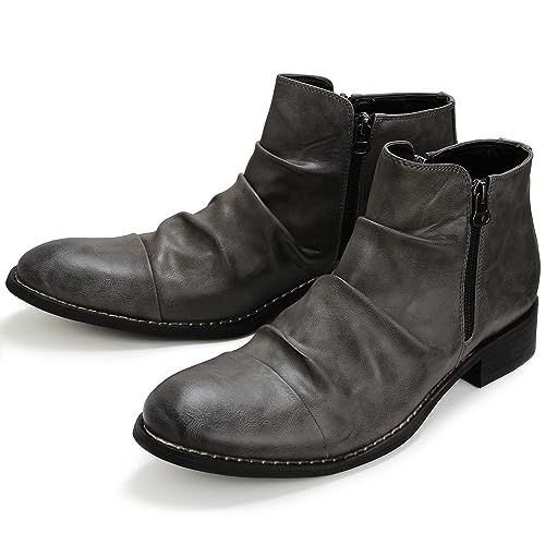 [AmeStar] ドレープ ブーツ メンズ エンジニア BOOTS サイドジッパー ショート 防水 靴 ワーク シューズ (グレー, 28.0 cm)