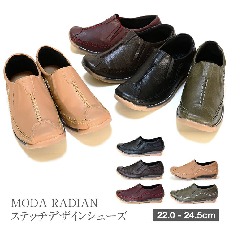 【送料無料】Moda Ladian モダラディアン ステッチデザインシューズ レザー調 外反母趾 コンフォートシューズ 軽い 歩きやすい 疲れにくい カジュアル 楽ちん 履きやすい 柔らかい 幅広 レディース 母の日 敬老の日 ms-2403 [mother]