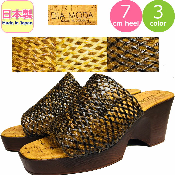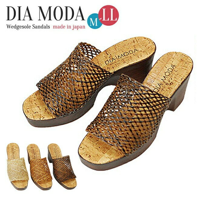 サンダル レディース 厚底 ミュール サンダル 日本製 DIA MODA ディアモーダ ウェッジソール 軽い 美脚サンダル メッシュ 太ヒール チャンキーヒール 靴 シューズ サボサンダル コンフォートサンダル 女性 婦人 ブラウン キャメル ベージュ【あす楽】おしゃれ かわいい