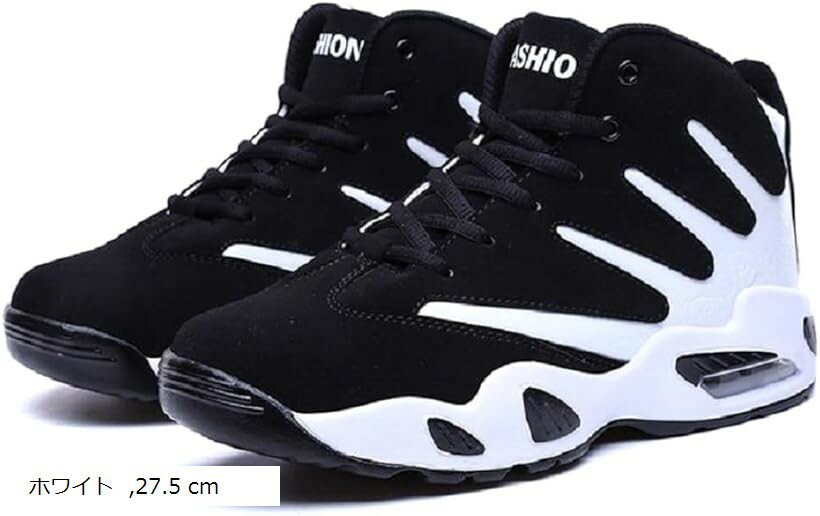 スニーカー ストリート トレーニング ミドルカット シューズ メンズ 背が高くなる シークレット 身長 UP ヒップホップ 厚底 スポーツ 靴 (ホワイト, 27.5 cm)