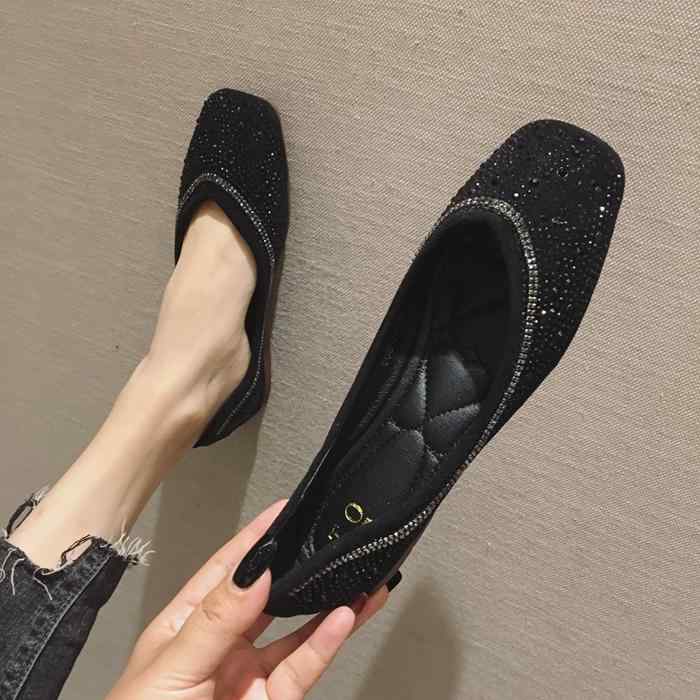 ・スタイル: 風・種類: パンプス・デザイン: ラメ.スパンコール.ラインストーン・柄: 無地・開口部: 浅め・開閉方式: スリッポン・つま先形状: スクエアトゥ・ヒールの高さ: フラットヒール・アッパー素材: スエード・裏地素材: PU・インソール素材: PU・ソール素材: ゴム・製法: 接着剤・カラー展開: ブラック.ホワイト・サイズ展開: 35.36.37.38.39.40.41