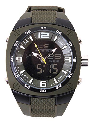 【中古】【未使用・未開封品】メンズ アナログ デジタル 50m 防水 スポーツウォッチ ミリタリー 多機能 ストップウォッチ アラーム バックライト ゴールドウォッチ, 0_Gold,