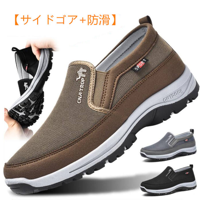 【サイドゴア+防滑】スニーカー メンズ スリッポン カジュアルシューズ ローカット 紳士靴 軽量 防滑 ウォーキングシューズ 春秋 歩きやすい 軽量 キャンバススニーカー 大きいサイズ パパシューズ 父の日3e 幅広い
