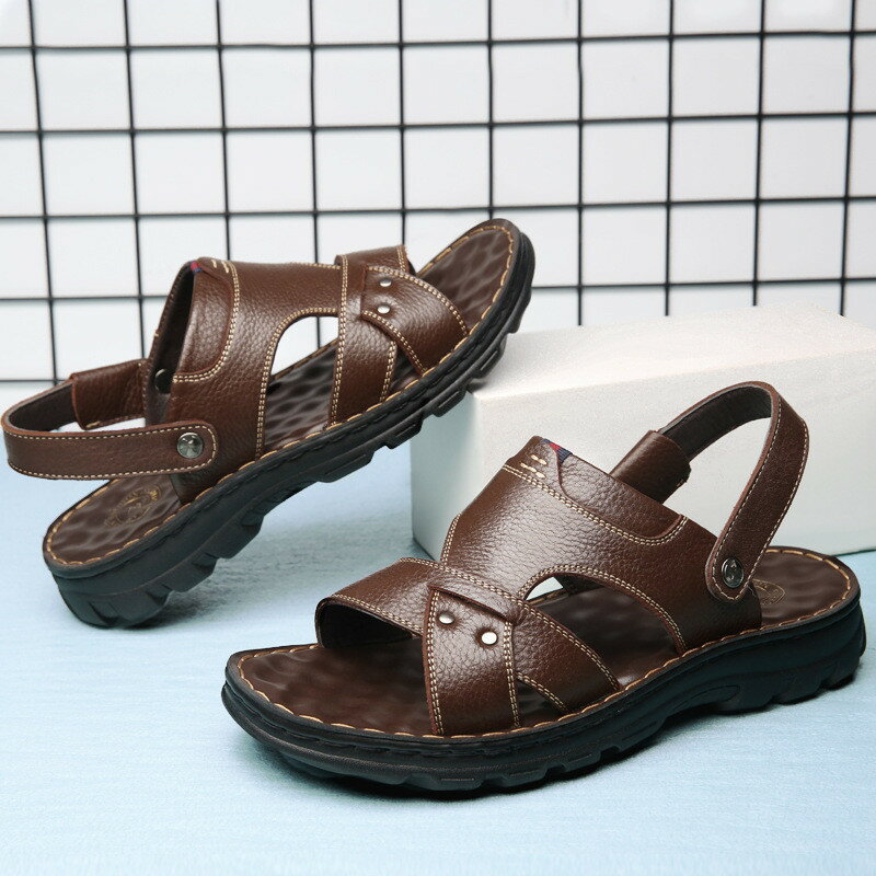 サンダル メンズ スポーツサンダル かかと付き 厚底 サンダル 夏 スリッポン パパ 牛革 滑り止め サンダル メンズ ブランド カジュアル 歩きやすい 大人 旅行 靴 疲れない オフィス サンダル 韓国 夏 オシャレ メンズファッション 大きいサイズ