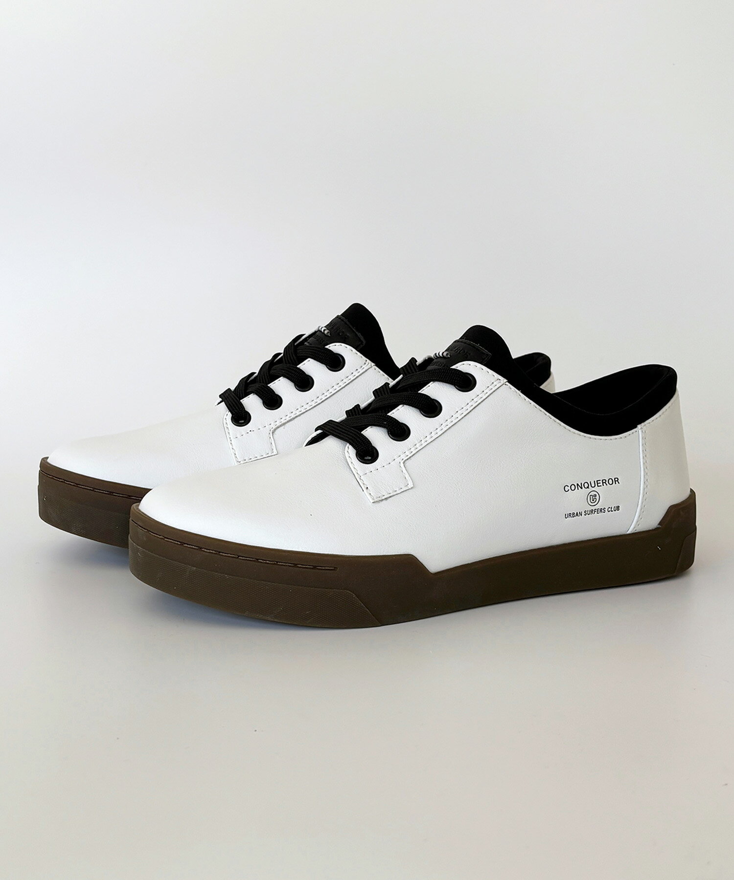 【シンプルなデザインにサーフマインドを注入した、アーバンスタンダードモデル】「conqueror(コンカラー)」はサーフブランドとして発信され、アクションスポーツマーケットを中心とした徹底したイメージ追求と販売コンセプトのもと、1998年にスタートしたドメスティックフットウェアブランドです。●URBAN FIT :シルエットとフィット感を重視したワイドな設計。※ややタイトな設計のため、従来のコンカラー製品よりも0.5センチアップを推奨。●履き口にネオプレーン素材を使用し、サーフブランドのエッセンスを注入。●大人気の防水機能”WATER-TEX”シリーズ。※静水で接地面から4センチ、4時間の防水性を保持。 完全防水ではありません。●Ortholite インソールを使用。通気性、耐久性、クッション性に優れた、高機能インソール。●ラバーとEVAの2WAY構造でグリップ力とクッション性に優れた厚みのあるアウトソール。≪商品詳細≫■素材■合成皮革(アクションレザー)、ゴム底+EVA