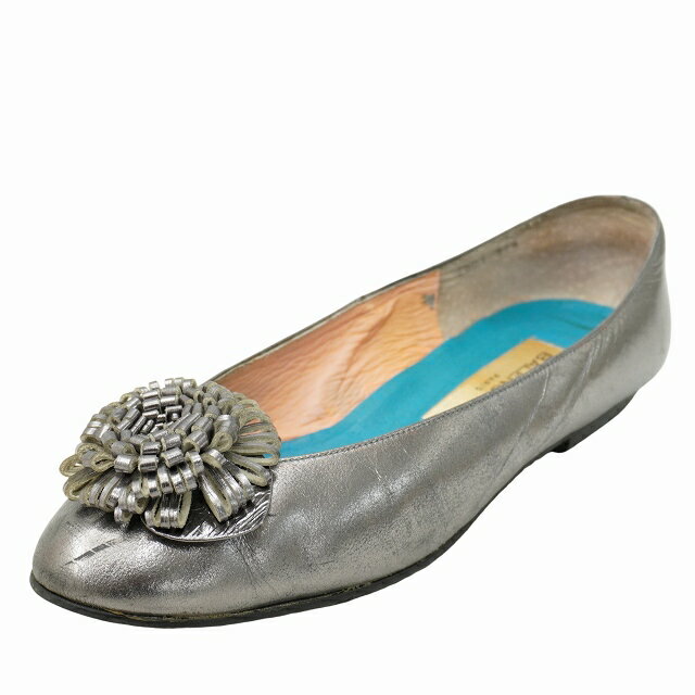 【中古】バレンシアガ BALENCIAGA 23.5cm フラワーモチーフ レザー フラットシューズ 36 1/2 SLIVER シルバー レディース 【ベクトル 古着】 251021