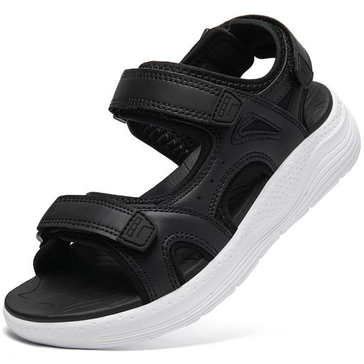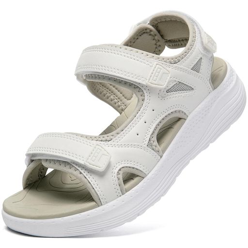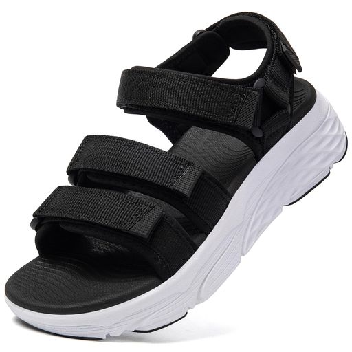 [MERPHINE]スポーツサンダル歩きやすいレディースマジックテープスニーカーサンダル軽量美脚通気女性夏用外履きクラシック白黒25.0cm