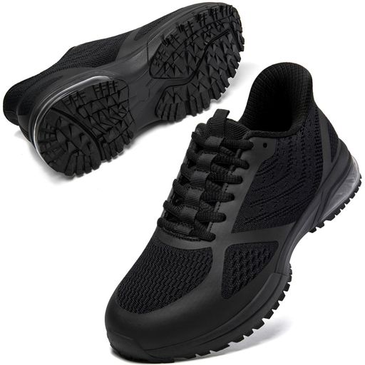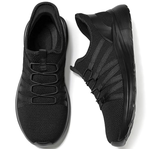 [MERPHINE]スニーカー室内シューズメッシュ軽量ウォーキングシューズ歩きやすい紐なし履き通勤立ち仕事大人オールブラック27.0cm