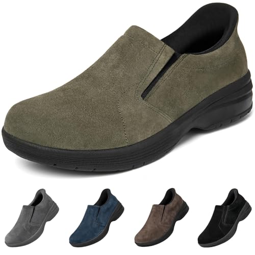 [MERPHINE] 【立ったまま履ける】本革 スエード スリッポン スニーカー メンズ スリップイン 手を使わずに履ける ウォーキングシューズ 紐なし カジュアル 履きやすい 夏 キャンプ 通勤 ドライビング グリーンブランド: MERPHINE
