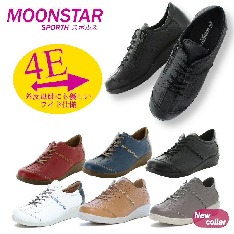 MoonStar ムーンスター スポルス SPORTH SP2401 SP 2401 シニア 高齢者 婦人靴 レディース 外反母趾 疲れにくい 柔らかい おしゃれ 幅広 天然皮革 ゆったり 歩きやすい 紐靴 ファスナー コンフォートシューズ 敬老の日 母の日 4E ワイド ウォーキング 出勤 仕事 スニーカー