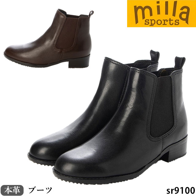 【割引クーポン対象商品】送料無料 ミラスポーツ 日本製 本革 ブーツ SR9100 コンフォートブーツ 4E サイドゴア 滑りにくいソール 防菌 防臭 ヒール3.5cm