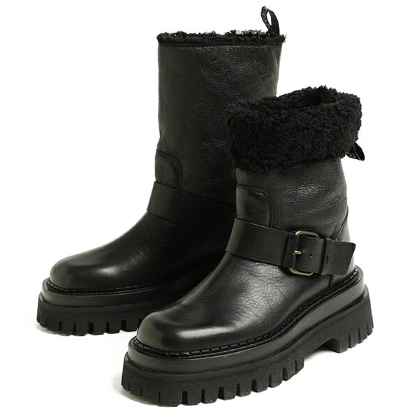 SARTORE サルトル ブーツ ショート エンジニア バックル スリップオン スクエアトゥ レザー シープスキン ムートン ボリュームソール 厚底 EVA SR4216 01 NERO ブラック